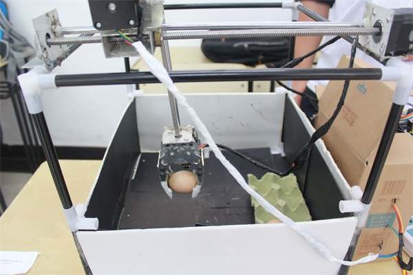 当前的养鸡场都是流水线操作,但是鸡蛋却需要人工收取、费时费力。为此,南京农业大学的同学们设计了“基于机器视觉的智能禽蛋收取系统”,通过机器爪子底下的自动识别摄像头,定位、识别鸡蛋,进行自助抓取。设计者之一、南京农业大学自动化专业大三学生高尚介绍,”我们把机器的爪子设计成凹状,底下是一个锥形,鸡蛋往上夹的时候,把鸡蛋往上托,而且中间是空心的,这样鸡蛋就不会受损。“