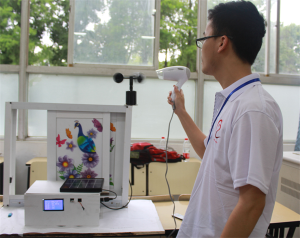 “通过传感器,自动监测室外的风速、温度、湿度、pm2.5等,通过处理器,自动实现开关窗。”设计者之一、东南大学成贤学院大四自动化专业学生孙庆凯现场向记者演示了他的设计“基于无线技术的智能家居综合管理系统”,用吹风机一吹,就能慢慢自动关窗。以后如果突然刮风、下雨,再也不要担心把家里打湿了。