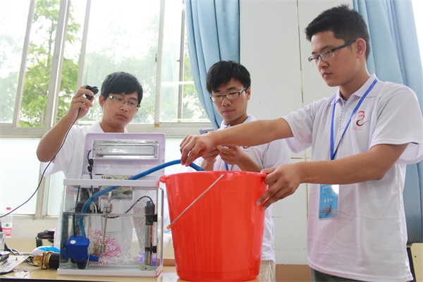 中国江苏网7月11日讯(记者杨丽)出差在外,没有人照顾家里的鱼儿怎么办?突然下雨了,不能及时回家关窗怎么办?以后再也不要为这些琐事烦恼了!今天,第十一届“博创杯”全国大学生嵌入式物联网设计大赛苏皖赛区比赛在南京农业大学工学院举办。自动给鱼儿喂食的神奇鱼缸、自动开关窗户的家庭管理系统等参赛选手的发明设计将成为市民们生活中的好帮手。