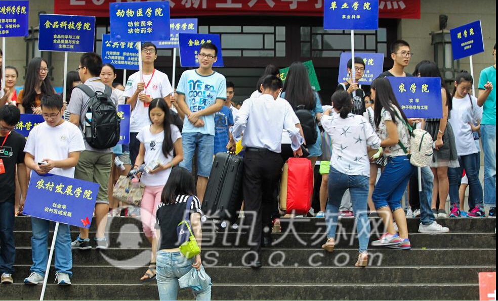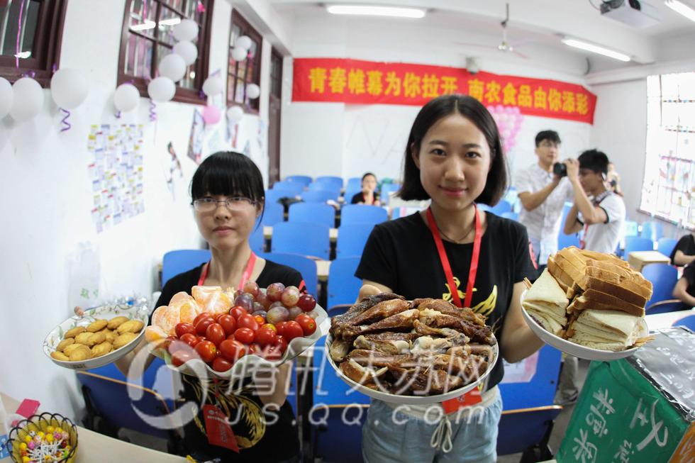 南京农业大学食品学院的学姐端着著名的“南农烧鸡”迎接学弟学妹