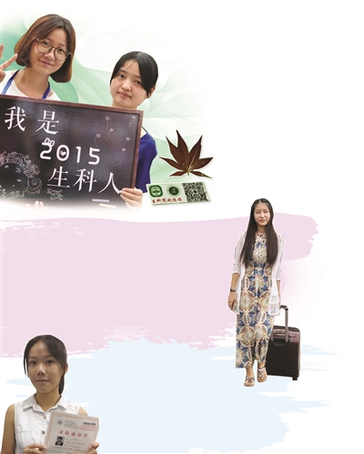 南师大生科院女生孟鑫贺(左)迎接学妹杭杭。