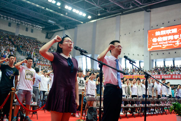 新生现场宣读入学誓词。