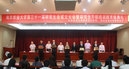会上,党委办公室主任胡正平宣读了《关于同意研究生会调整的批复》,戚允升和校团委副书记谭智赟分别致辞。姚志友宣读了《关于表彰2014-2015年度优秀研究生分会的决定》,公共管理学院、园艺学院、植物保护学院、信息科技学院、人文社会科学学院研究生分会获得优秀研究生分会称号。刘桂林宣读第五次研究生代表大会第五届委员会增补委员名单和第31届研究生会成员名单,并代表新一届研究生会做本届研究生会工作计划报告。