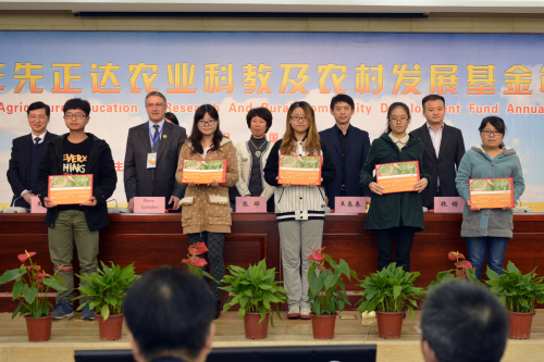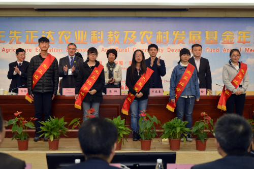年会上,参会领导为我校15名获得“先正达奖学金”的优秀学生颁发了获奖证书,为我校新成立的“先正达学社”的学生代表授予绶带。我校获奖学生代表许娜以及两位杰出农村实用人才代表发表了获奖感言。