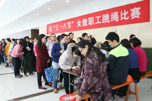 3月4日下午,校工会组织了庆“三•八节”女教职工跳绳比赛。在各部门工会女工委的积极组织下,全校近300名女教职工积极报名参与了比赛。