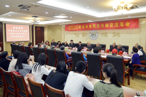 4月11日,中国农业大学原校长、书画院院长江树人教授一行18人来我校开展书画交流笔会活动。校党委副书记王春春,校党委常委、副校长董维春出席交流笔会,“国家大学生文化素质教育基地”负责人、我校热爱书画艺术的老领导、老同志、部分在职教职工和学生参加了活动。活动由王春春主持。