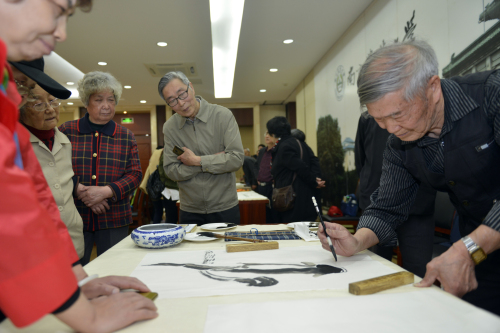 两校的老同志们和我校学生在现场挥毫泼墨,相互切磋,互赠墨宝,拍照留念,气氛热烈。南农大原副校长王耀南主持书画创作活动并现场创作多幅书法作品。两校老同志们指导我校学生创作,并为学生留下墨宝。会后,我校老干部办公室副主任张鲲引导老同志参观了单人耘书画展览室。