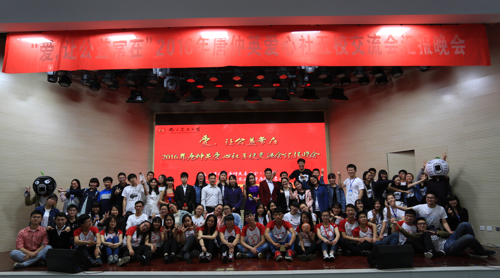 晚上6点,“爱,让公益常在”主题汇报晚会如期举行。来访的四校同学与南农大唐爱社一同演绎了精彩的节目。