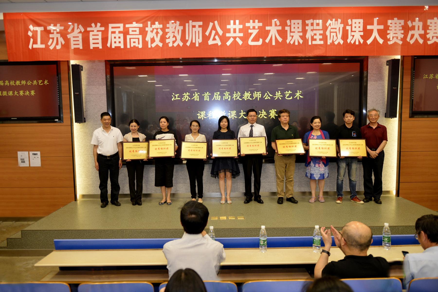 据悉,为推进高校美育教学改革,推动江苏高校公共艺术教育精品课程建设,江苏省教育厅在南京农业大学举办首届公共艺术微课大赛,比赛本着“以赛促建,以赛促学、以赛促优”的宗旨,通过初赛和复赛,最后,共有本科组25件作品和专科组18件作品入围决赛,通过决赛专家评比,朱志平、陈丽竹等12位教师获本科组一等奖,陶园、蒋惠等9位教师获专科组一等奖,南京农业大学等8家单位获优秀组织奖。江苏省教育厅副厅长朱卫国、艺术教育专家谷公胜、南京农业大学副校长胡锋、江苏省教育厅体卫艺处处长张鲤鲤、南京农业大学人文学院院长杨旺生等先后为获奖教师颁奖。