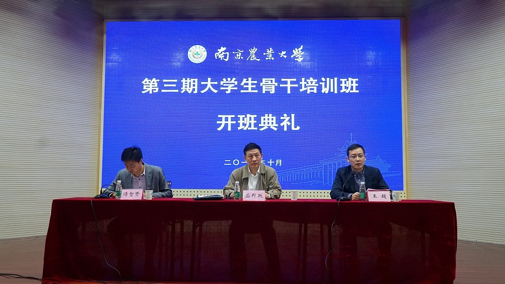 10月15日,南京农业大学第三期大学生骨干培训班开班仪式在大学生活动中心举行,校党委副书记、纪委书记盛邦跃出席开班仪式并讲话,来自校团委、校学生会、各校级学生组织以及各学院团学组织的370名学生骨干参加了仪式。