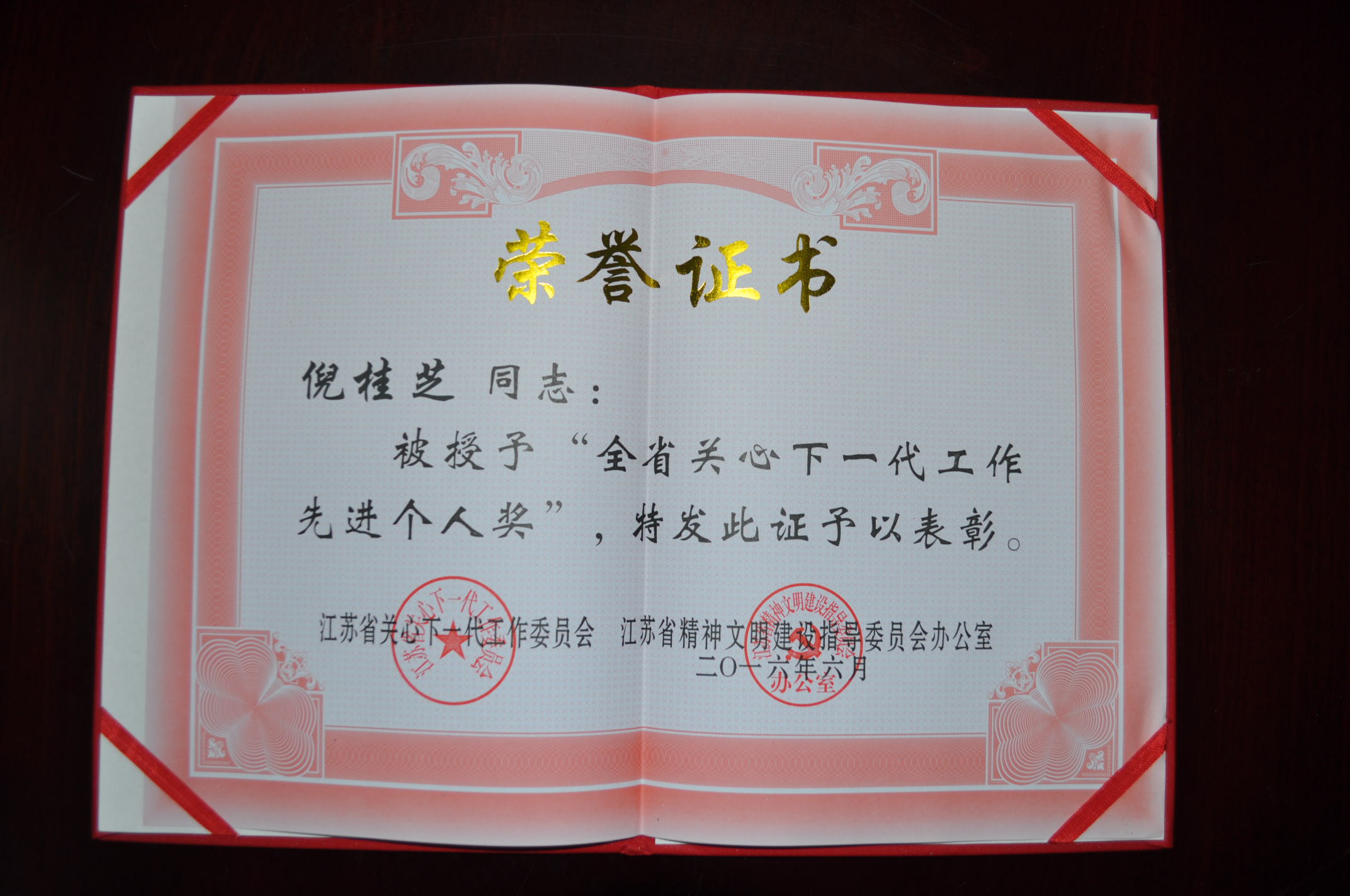 2009年,倪桂芝被授系统予“江苏省教育关心下一代工作突出贡献奖”;2011年被教育部评为“关心下一代工作先进个人”;2012年,省教育厅为其颁发了“从事关心下一代领导工作十年以上荣誉证书”。
