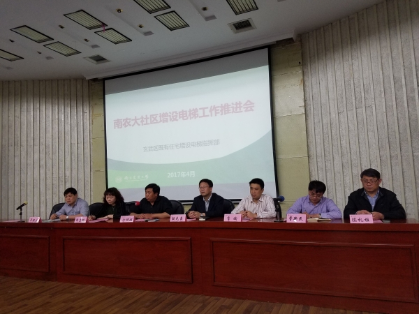 4月19日晚,玄武区既有住宅增设电梯办公室(以下简称“增梯办”)会同孝陵卫街道,在我校图书馆报告厅召开南农大社区既有建筑增设电梯工作推进会。玄武区增梯办主任薛惠艳、孝陵卫街道党工委书记朱明勇、主任方明城、副主任陈玉梅、我校资后党委书记陈礼柱、资后处处长孙健等领导及区增梯办、孝陵卫街道、资后处有关工作人员参加会议,南农大社区已申请增设电梯的近100位业主代表参加会议。方明成主持会议。会前,副校长戴建君到场会见与会专家及领导,并代表学校表示感谢。
