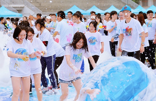5月6日,由工学院团委主办,工学院学生会承办,vivo 2017 BUBBLE RUN协办的“趣炫泡泡跑”在工学院运动场顺利举行。千余名师生在漫天飘扬的泡泡跑中激情开跑。