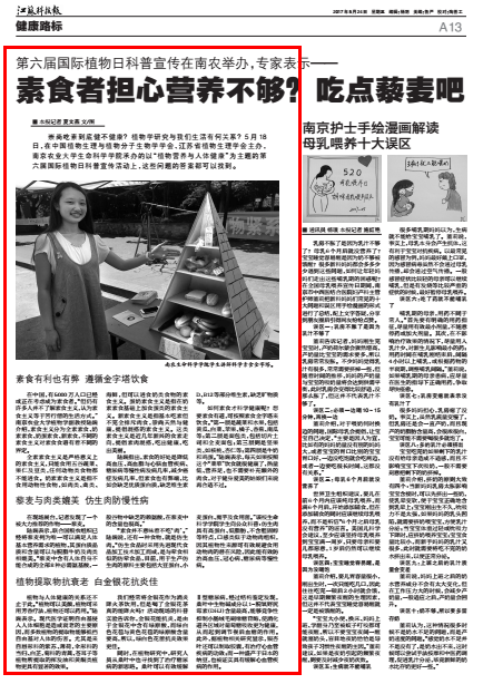 崇尚吃素到底健不健康?植物学研究与我们生活有何关系?5月18日,在中国植物生理与植物分子生物学学会、江苏省植物生理学会主办,南京农业大学生命科学学院承办的以“植物营养与人体健康”为主题的第六届国际植物日科普宣传活动上,这些问题的答案都可以找到。