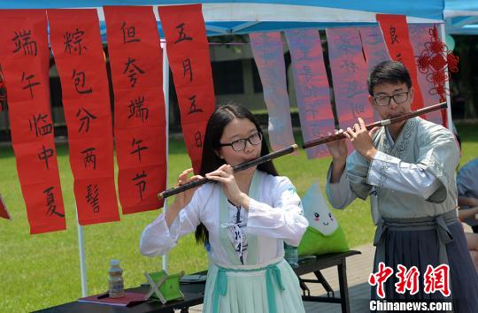 5月26日,主题为“传承弘扬源远流长的中国传统节日民俗与饮食文化”的端午文化节在南京农业大学举办,来自该校食品科技学院的大学生们设立节日溯源区、饮食文化区、民俗体验区、游戏互动区,开展端午文化宣传、粽子制作教学、投壶游艺互动,汉服竹笛表演等体验项目,深入挖掘传统节日底蕴,展示饮食文化和传统民俗,吸引了在校师生、海外留学生前来参与。