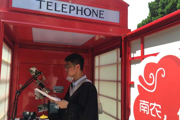 中国江苏网6月11日讯(记者 郭蓓 通讯员 天颖)“想把我唱给你听,趁现在年少如花,花儿尽情地开吧,装点你的岁月我的枝桠,岁月是值得怀念的留恋的,红色的脸庞”小柯的这首校园民谣,曾感动无数象牙塔里的学子。这个毕业季,今天上午,南京农业大学学生走进校园朗读亭,将想对老师们说的话,通过声音和影像记录下来。把自己的感谢,说给恩师听。