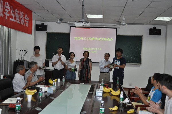 座谈会上,贾翠芳代表校关工委向生工132班全体同学赠送了礼物。