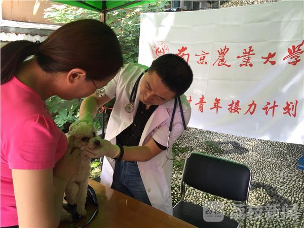 上午九点,在南京市富康社区天地花园小区,南京农业大学动物医院副院长、高级兽医师赵艳兵带领10多名动物医学专业学生正在为社区宠物提供免费诊断和咨询。赵艳兵表示,宠物和人一样,十岁左右的宠物就是高龄,往往会出现糖尿病,心脏病的症状。