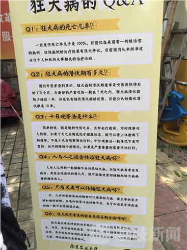 针对公众比较关注的狂犬病,实践小分队通过印发宣传资料、有奖知识竞赛、趣味游戏等形式,提醒宠物主人一定要及时给宠物注射疫苗,赵艳兵告诉记者,每个家庭都必须及时为为宠物接种,而国内目前疫苗有效期仅有1年,不少居民对宠物接种疫苗的意识还比较薄弱。而狂犬病的死亡率是100%的,居民要是被狗咬了,被猫抓了,要及时到医院处理。