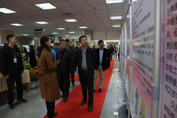 开幕式结束后,与会领导及师生参观了菊花文化图文展览区、互动休闲体验区、菊花主题图书推荐区、菊花茶艺表演区、摄影、插花花艺、书法绘画等作品展示区、以及各色切花菊、盆栽局、造型菊,丰富多彩的多元文化展示和美丽怒放的精品菊花连连引发参观者的赞叹。
