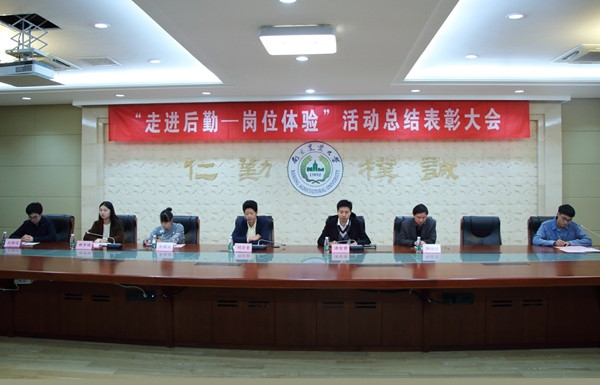 11月1日下午,由后勤集团公司和校团委主办,校学生会承办的“走近后勤·岗位体验”活动的表彰大会在金陵研究院二楼会议室召开。资产与后勤党委副书记、后勤集团公司副总经理胡会奎,校团委副书记、公共艺术教育中心副主任谭智赟,团委校园文化部部长朱媛媛,后勤集团公司安全质量管理中心陶金才,校学生会主席解梦斓,副主席王根迩出席,16个学院的学生代表以及获奖学生参加了本次会议。