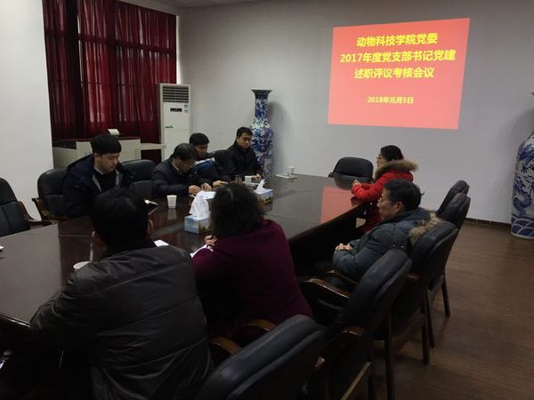 2018年元月5日上午,动物科技学院党委在逸夫楼2040召开了党支部书记党建述职评议考核工作会议。学院全体党委委员、支部书记参加了会议,会议由院党委书记高峰主持。