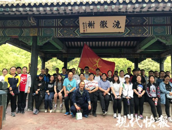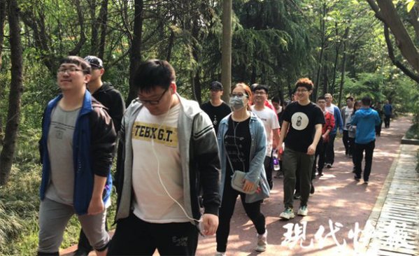 每周还有一次室外的 外景课 ,很受同学们喜欢。25 日下午,记者就跟着周老师和同学们,体验了一次徒步拉练。路线是从下马坊公园开始,沿着中山陵景区一圈,总里程大约 10 公里。一半路程下来,已经是满头大汗,气喘吁吁。