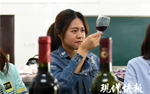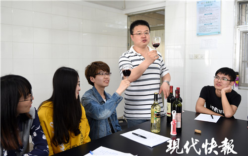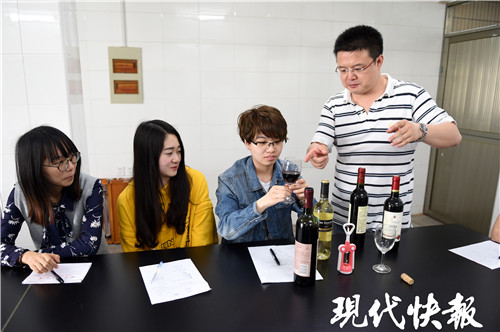 现代快报讯(实习生 赵晶 记者 马壮壮 仲茜/文 赵杰/摄)说到喝酒大家肯定都不陌生,但是如何品酒,你是不是被难倒了呢?谈起酒,中国人肯定是很有发言权的,中国的酒文化可以说是博大精深。在当今社会,我们生活中能经常喝到洋酒,葡萄酒就是其中之一。南京农业大学食品科学技术学院的副教授李伟开设了一门公选课《酒文化与品鉴》,在学校就能学习到关于酒的各种知识。