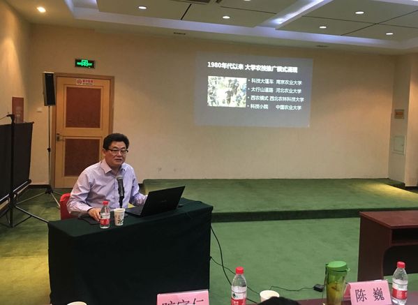 中国农业大学教授旷宗仁作题为“基层农技推广人员基本状况调查报告”,介绍了基层农技推广人员队伍、学历、技能等方面现状,提出在新时期下农技推广发展的建议。西北农林大学推广处处长王亚平介绍了农技推广“西农模式”的探索与实践,指出西农在政府引导下,针对地方特色产业,依托永久性大学试验站开展农技推广的措施和成效。