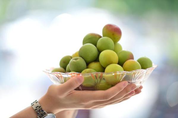 现场摆放的各色梅子,令人垂涎欲滴。(陆润卿 摄)
