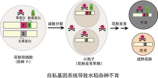 水稻是世界上最主要的粮食作物之一,提高水稻产量对国家粮食安全意义重大。科学界普遍认为,利用水稻籼粳交的杂种优势可以提高15%至30%的单产,但是同时会出现花粉不育、小穗结实率低、子粒不饱满等杂种不育现象。余晓文告诉凤凰网江苏,这是“自私基因”在作祟。