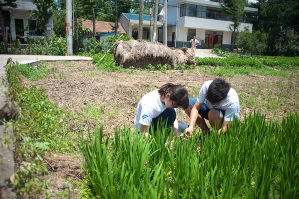 学生向村民了解当地的除草情况
