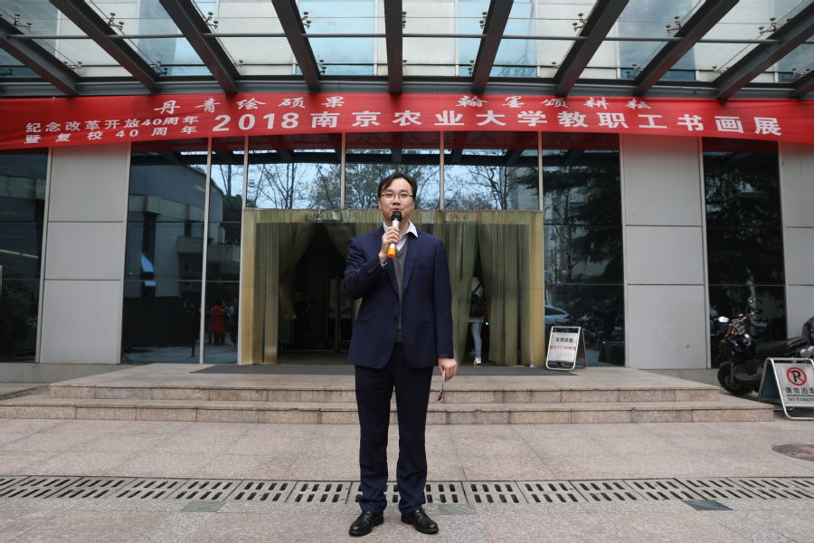 闫祥林回顾改革开放40周年、学校复校40年来走过的风雨历程,肯定此次书画展的积极意义,并对参加开幕式的师生及离退休教职工表示热烈欢迎。退休教职工作者代表园艺学院陈翔高、教职工作者代表理学院王环宇分别发言,表达对学校发展的由衷祝福。闫祥林宣布画展正式开幕。