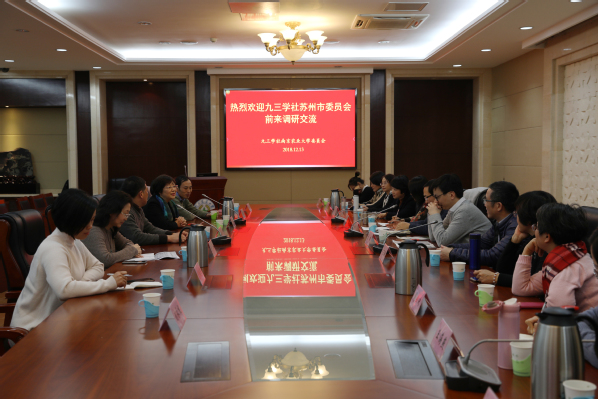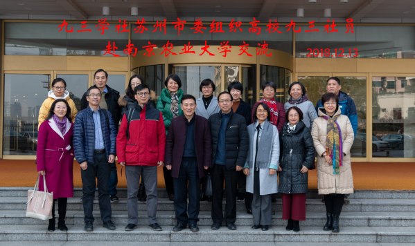 12月13日,九三学社苏州市委员会副主委谢剑峰带队,组织苏州高校九三社员一行12人来九三学社南农大委员会调研交流。校党委副书记盛邦跃出席接待,南农九三副主委潘剑君、林乐芬、窦道龙、何春霞、沈波,委员房婉萍参加本次交流。