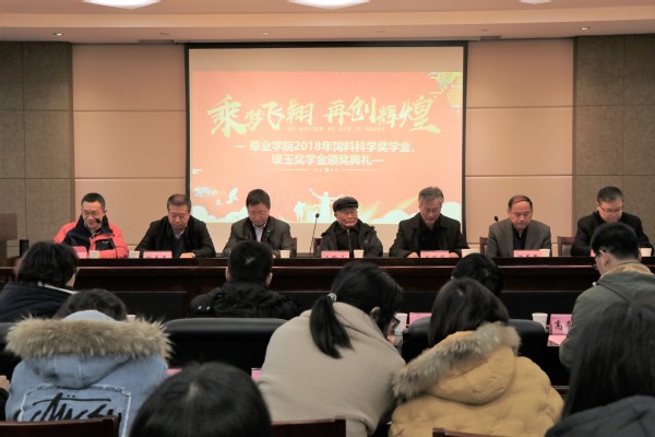 1月11日,草业学院在行政北楼会议室举行2018年饲料科学奖学金、璞玉草业科学奖学金颁奖典礼。86岁高龄的王槐三教授、校发展委员会张红生主任、江苏波杜农牧股份有限公司尤佩华总经理等嘉宾应邀出席,学院党总支书记李俊龙、副书记高务龙以及全体教师、研究生和部分本科生参加了会议。典礼由草业学院院长郭振飞主持。