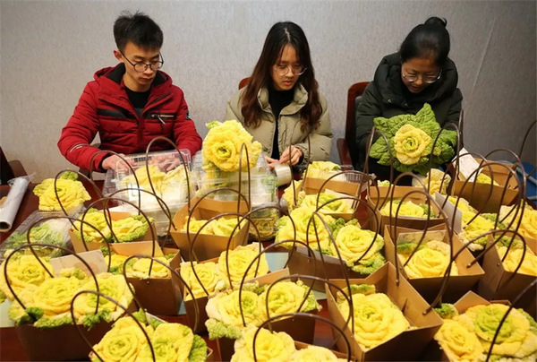 南京农业大学侯喜林教授团队历经十多年,研究成功白菜新品种“黄玫瑰”。为了帮老师打响这一新品种的知名度,他的3名学生趁着情人节玫瑰销售的热度,组团在线上线下进行了推销。