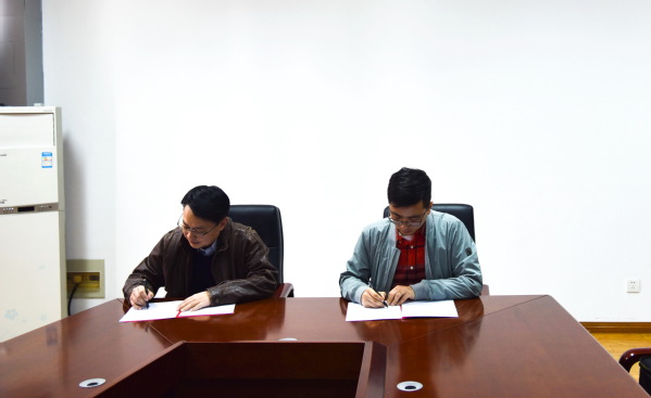 郑岚代表学院同刘旸校友签署“国机励志奖学金”捐赠协议。