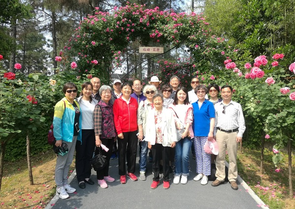 上午,退休教师们前往溧水的南京玫瑰园。老同志们一路畅谈,欢声笑语不断,乘车约一个小时抵达溧水区石湫镇的玫瑰园景区。园区草木丰茂,山水相依,自然生态优美,是南京第一家、规模最大的以玫瑰为主题的休闲式庄园。老同志们兴致勃勃地游览了玫瑰花田、玫瑰花谷和玫瑰树林,或有说有笑,或拍照留念,在明媚的春光中饱览了玫瑰文化。