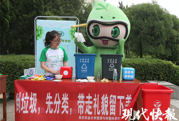 现代快报讯(记者 王益 / 文 马晶晶 / 摄 通讯员 李长钦 李鸣 许天颖)7 月 20 日,南京农业大学举行了一场垃圾分类行动,资源与环境科学学院率先在全校范围内发起 强制垃圾分类 倡议。