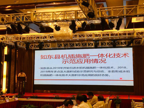 示范性代表如东县作物栽培指导站於永杰副站长分享了如东县机插施肥一体化技术示范应用情况,他表示,如东县从2018年开始引进水稻机插施肥一体化技术,2018、2019两年多点及大面积试验示范研究与总结,全县形成了水稻机插施肥一体化技术大面积示范应用的良好态势。