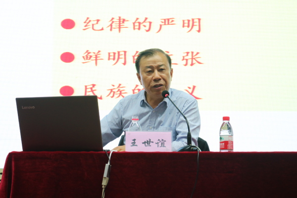 王世谊强调,中国共产党的领导地位、执政地位不是自封的,是历史形成的。中国共产党成功的原因,一是始终坚持把马克思主义基本原理同中国具体实际相结合,不断推进马克思主义的中国化,形成中国特色社会主义道路、理论、制度、文化;二是紧紧依靠最广大人民群众,保持党同人民群众的血肉联系;三是中国共产党的正确领导和不懈奋斗;四是不断加强党的自身建设,始终保持党的先进性和纯洁性。并结合当前国家发展面临着均衡、公平、思想等七大困难和挑战,结合“如何走出中等收入陷阱”、“如何避免修昔底德陷阱”、“如何确保长治久安”、“如何跳出历史周期律”等具体问题,启发青年学生党员思考。