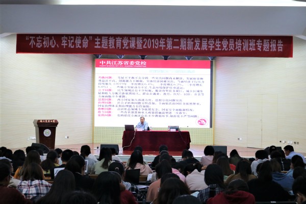 10月23日,“不忘初心、牢记使命”主题教育党课暨2019年第二期新发展学生党员培训班专题报告会在大学生活动中心报告厅举行,江苏党的建设研究基地常务副主任、二级教授,王世谊应邀作题为《新中国70年:光辉历程、伟大成就、历史启示及现实思考》的专题报告。2019年上半年新发展学生党员300余人参加了报告会。报告会由校组织部副部长许承保主持。