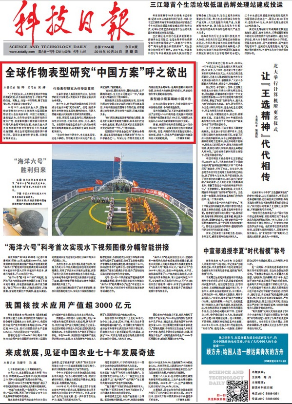 美国国家科学基金会已将“理解生命规律,通过基因型的鉴定来预测表型”作为6大科学前沿之一。专家认为,作物表型组及其与基因组关系的解析,是高效创制利用种质资源、培育重大突破性品种的根本,代表着作物科学发展的前沿方向。