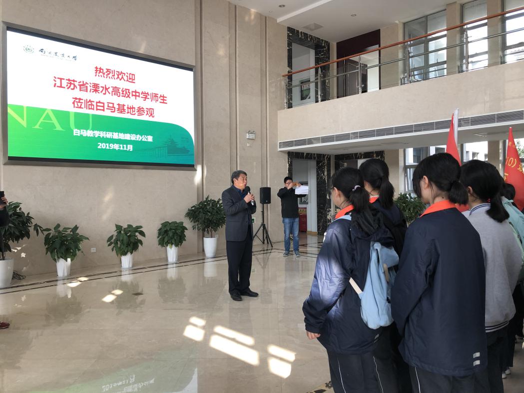 共建活动主要分为老师对南农的讲解和学生对基地的参观两个部分,活动伊始,白马基地办公室主任陈礼柱对溧水高级中学师生的到来表示了热烈的欢迎。