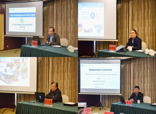 上午的会议分两个阶段进行,邀请四位专家作主题报告。会议第一阶段由南京农业大学工学院院长汪小旵教授主持。农业农村部南京农业机械化研究所金诚谦研究员作《大田农机智能化技术现状与途径》报告,从为何要发展大田农机智能化技术、大田农机智能化关键技术、如何实现大田农机智能化等方面进行了介绍;东南大学陈熙源教授作《深耦合导航及农田作业应用》报告,从深耦合导航的背景与需求、深耦合导航的发展现状与趋势、深耦合导航的关键技术及问题、农田作业应用等方面进行了报告。会议第二阶段由南京农业大学工学院副院长沈明霞教授主持。安徽农业大学朱林教授作《高速耕耘机械设计中的热的问题》报告,从研究背景、研究方法、阶段成果等方面进了介绍;南京农业大学姬长英教授作《果蔬机器人的发展与展望》报告,从果蔬机器人的发展背景与现状、果蔬机器人的技术特点、果蔬机器人研究中的困惑与思考等方面进行了介绍。大会现场讨论热烈、学术交流氛围浓厚。