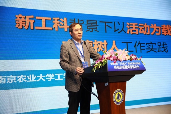 23日,大会举办了四场主旨报告,21所试点高校和学院进行了经验分享。南京农业大学工学院作为试点学院代表进行交流发言,张兆同作《新工科背景下以活动为载体的立德树人工作实践》经验分享报告。报告紧紧围绕“立德树人”根本任务,结合新工科人才培养方案,兼顾大学生发展的不同需求和校园生活的基本特征,主要讲述了“学之德、研之德、宿之德、友之德、活之德、业之德”六大德育目标,着重强调了育人平台建设要以形式多样、健康向上、格调高雅、具有一定教育意义的校园文化活动为载体,同时注重活动的目的性、科学性和有效性,切实将德育从一种要求内化为学生的一种习惯,最终升华成一种境界和品格。会议期间,工学院参会人员还一同参观了主题工作展览,观摩学习各高校和学院在“三全育人”工作上的优秀经验做法。