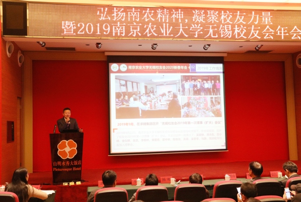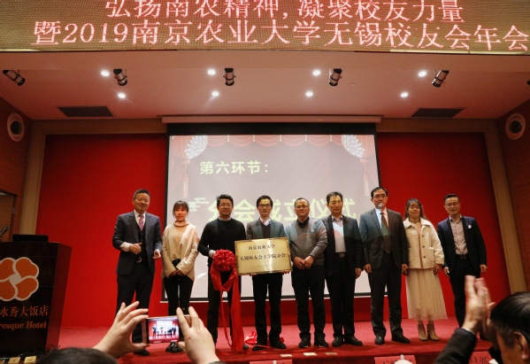 12月29日下午,南京农业大学无锡校友会在无锡山明水秀酒店举行2019年会暨工学院校友分会成立仪式。校友总会副会长王耀南(原副校长)、校友总会秘书长张红生、工学院党委书记李昌新、党委副书记兼纪委书记张兆同、总务处处长杨明、管理工程系主任李静、管理工程系党总支副书记张鸣(主持工作)、无锡校友会会长段哲以及来自无锡各地校友200多人参加活动。活动由无锡校友会秘书长朱荣方(80级遗传育种专业)主持。