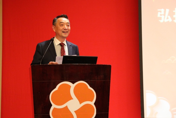 张红生总结讲话。张红生首先转达了南京农业大学陈发棣校长对无锡校友会2019年会顺利召开的祝贺和对无锡校友的美好祝愿。随后,张红生通报了校友关心的学校重大事项:学校现任领导班子成员情况、学校第十二次党代会确立的发展目标和定位(农业特色世界一流大学)、江北新校区建设进展及未来规划、学校入选“双一流”学科建设高校及目前学校的排名情况等,分析了高校校友工作面临的新形势,邀请更多校友参与“校友之家”的产品展示和交流活动。张红生强调:30万校友是学校重要的组成部分,校友总会及各地校友会当竭尽全力服务校友,促进校友与学校事业共同发展,希望各地方校友会将“诚朴勤仁”校训贯穿在日常工作中,多关注并看望地方老校友,多支持毕业年限短的年轻校友事业发展。