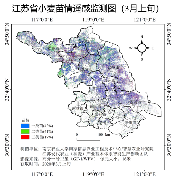陈春生介绍,一拿到南农大提供的苗情图,兴化市农技推广中心就对全市的农技人员、农场主和大户们进行了线上分类指导,仅1个月时间,三类苗比例显著下降,一、二类苗占比将近90%。
