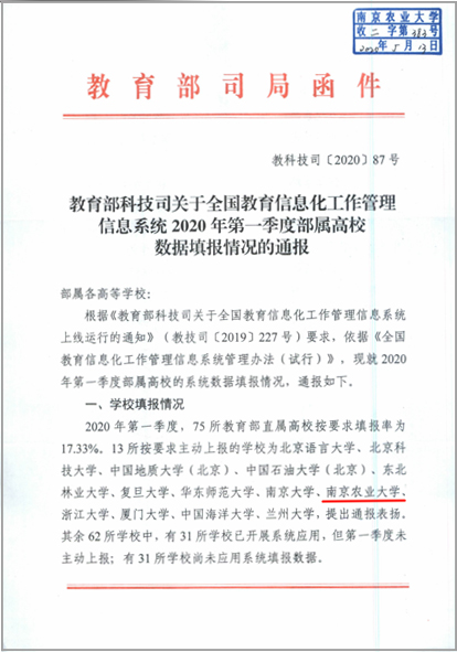 近年来,我校高度重视教育信息化工作。2020年第一季度,校信息化建设中心根据教育部教育信息化工作管理要求,对学校教育信息化数据进行有序的梳理和统计,并按照《全国教育信息化工作管理系统管理办法(试行)》要求,积极主动完成数据填报工作,获教育部科技司的通报表扬。